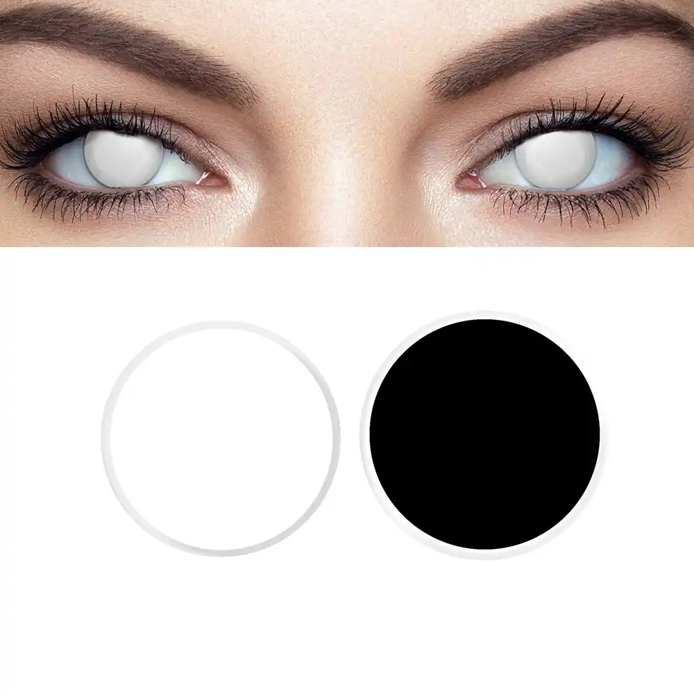 Create an unworldly spooky look with our white contact lenses. We stock just about every crazy contact lens there is from the downright scary looking to lovely bright pink but the most popular lenses at halloween are always the plain white contact lenses which look totally awesome. Scleral novelty contact lenses cover the white (sclera) part of the eye as well as the pupil. Are white contact lenses safe?